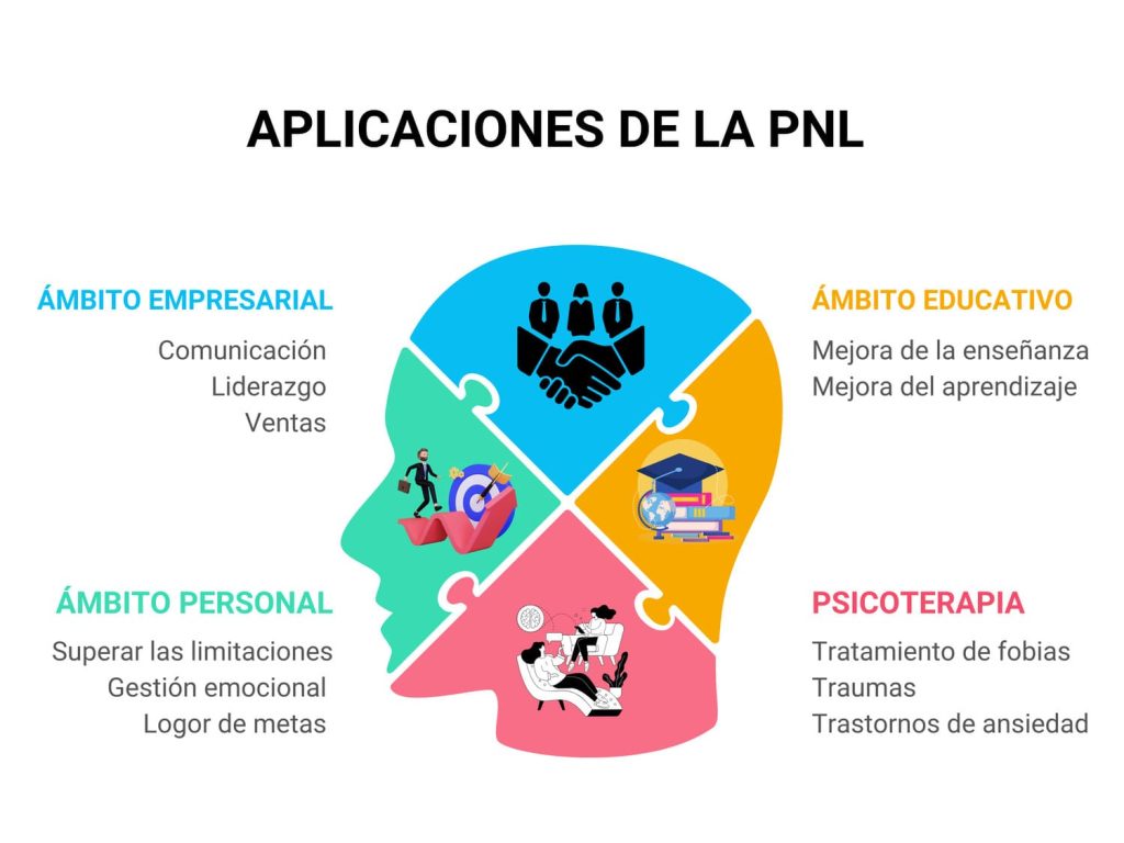 Inicialmente enfocada en el ámbito terapéutico, la PNL se ha expandido a diversos campos, como el coaching, la educación, los negocios y el desarrollo personal. Su efectividad para alcanzar metas, superar desafíos y potenciar el bienestar la ha consolidado como una herramienta clave para el crecimiento humano.